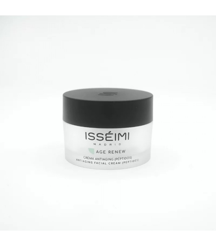 Crema nutritiva antiedad de tacto sedoso y rápida absorción formulada con peptidos y activos rejuvenecedores para una piel firme, hidratada y uniforme.