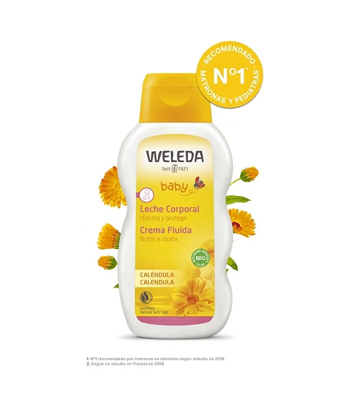 Esta leche 100% natural hidrata, suaviza y favorece las funciones protectoras naturales de la piel del bebé. De textura ligera, penetra fácilmente sin dejar una película grasa. Con aceite de sésamo BIO que nutre y previene la sequedad cutánea, y extractos de caléndula BIO que calman y alivian la piel. Información del fabricante: Weleda AG, 73525 Schwäbisch Gmünd, Germany, www.weleda.com