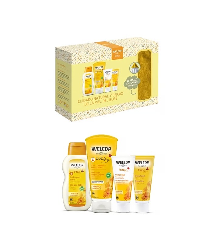 Pack completo con los productos necesarios para el cuidado de la piel del bebé desde el primer día. Con un precio especial y una toalla de baño de algodón DE REGALO.