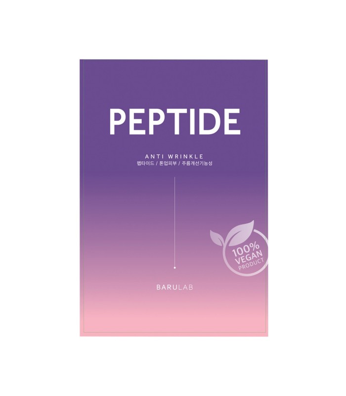 Péptidos. Quédate con este nombre si te preocupa el notar la piel envejecida, las arrugas, la pérdida de firmeza del rostro y la piel seca. Los péptidos son fragmentos de proteínas que estimulan la producción de colágeno natural de la piel, por eso esta mascarilla de tejido antiedad con péptidos de Barulab será ideal en rutinas antiedad o pieles maduras.